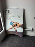 allenging ballet style classes have been making their way through the city. I was first introduced to the studio through some promotional material available at the Queen st. Lululemon. It was a post card similar to their sandwich board sign, see picture. The pic is a totally ripped chick in ballet style training gear, to which I thought who wouldn’t want to look like that? So finally I got there this week. I was a little skeptical after trying other fitness trends that flopped (cough cough Jukari), but after two classes at the Queen West studio, I can say that Barreworks is completely different.