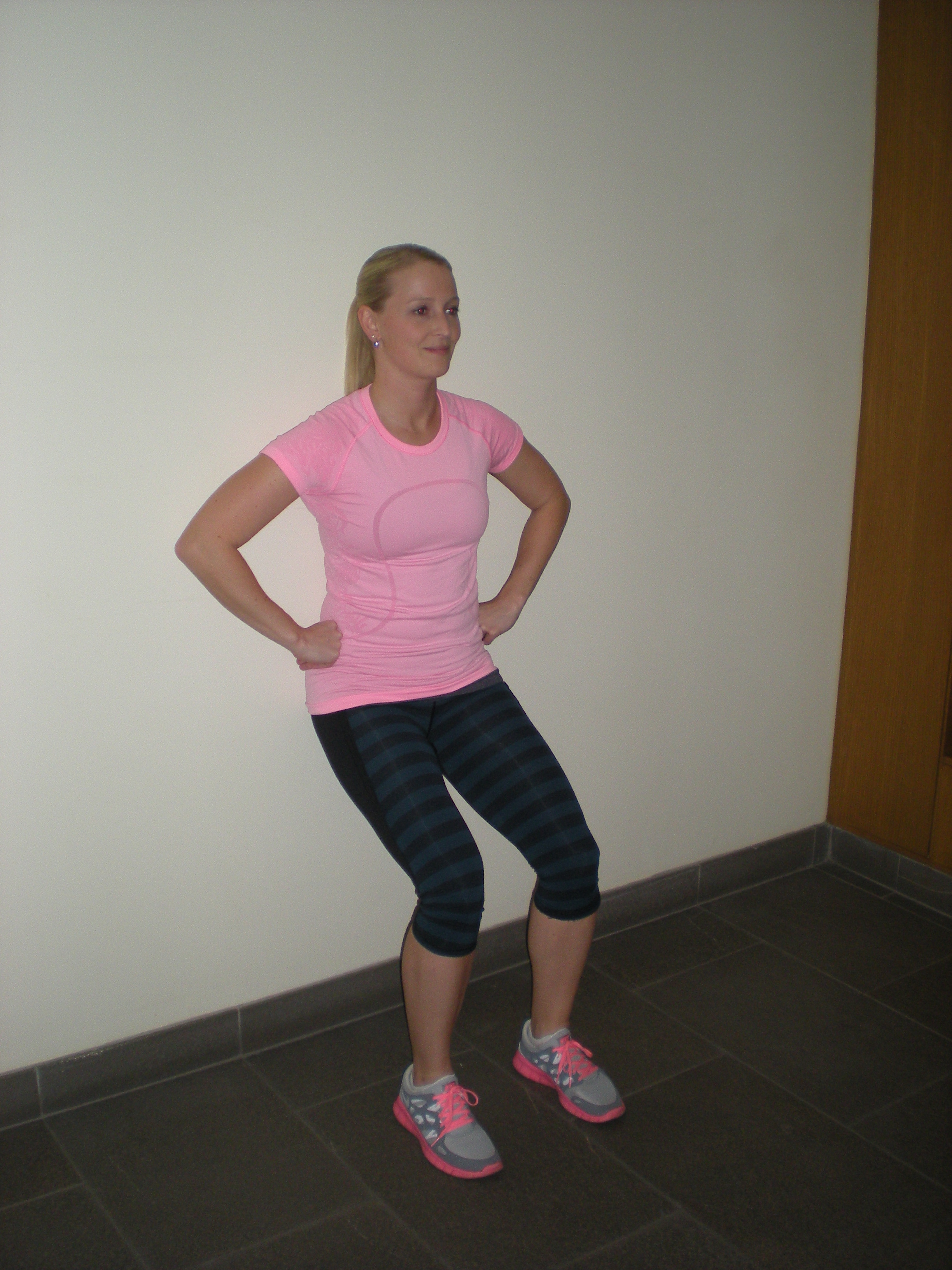 Start standing tall with your back leaning against a wall and feet shoulder-width apart and two feet from the wall. Over the minute lower gradually to four different levels concluding with your thighs parallel to the floor and knees bent a ninety degrees.