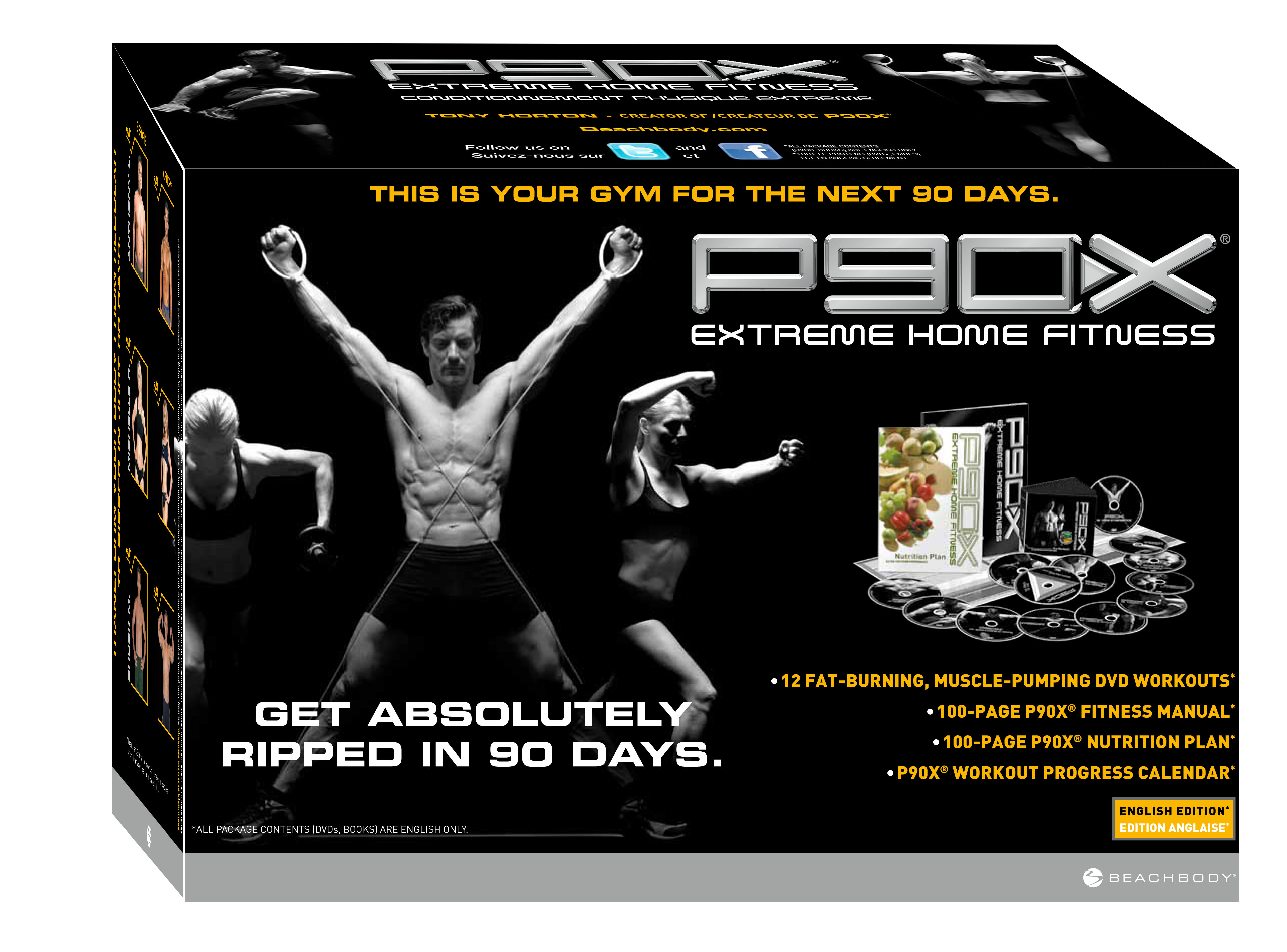 P90X is an “extreme” fitness system which uses muscle confusion to challenge the body with strength training, cardio, core, yoga, and flexibility.