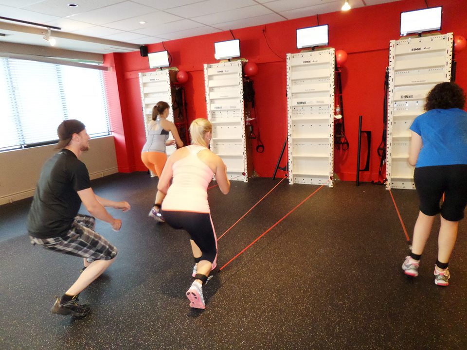 The 30 minute class is spent performing 30 second intervals of different strength and cardio activities using the Fitwall and its various attachments including a push up bar and resistance tubing attached to your ankles. The instructors model the moves in between and Jenn and Jon were great at clarifying and providing safety cues as required. For a few days after my lats were feeling very sore and it is safe to say the muscles in my back and arms got a workout that they hadn’t had in a while as a result of the vertical direction of training.