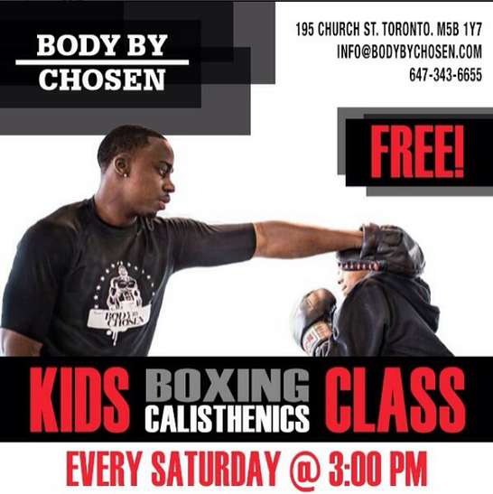 Join Body by Chosen and their elite group of personal trainers for a free Family Day kids Boxing Calisthenics Class. Boys and girls ages 8-14 will participate in a 60 minute class which will begin with a mentorship discussion on healthy living and also a demonstration on some of the bar tricks Body By Chosen followed by a training session of calisthenics and boxing exercises to keep the kids active and promote healthy, active living. Details.